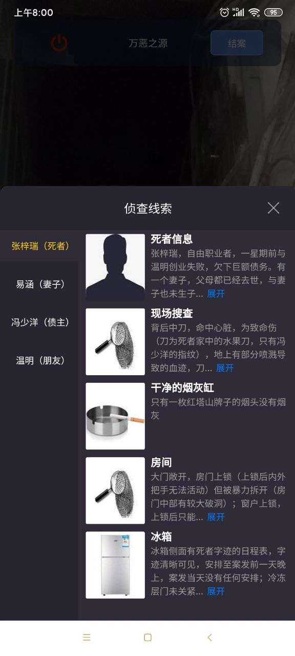 首先、这次的标题就是一个提示,万恶之源就是指的钱,而冯少洋作为债主杀死死者就拿不到钱了,没有作案的动机。而且如果是他伪造的现场也没有必要在后来到来之后又强行破坏。大概也可以先排除。