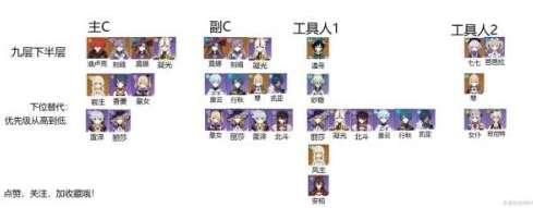 第9层第一间其实很简单,只要别靠近史莱姆就行,尽量走位拉着输出,不然....有你爽的,可能直接暴毙...第二间上半最好有聚怪角色,方便快速打怪,最后召唤蚊子的技能比较恶心,有个三角阵还有个蓄力落雷,三角阵不要碰到边缘,落雷可以离远也可以优先击破,这时候奶就显的很重要了.下半层最好在它们爆发前干掉,但会有些困难,小心风属性愚人众,被吸住有极大几率暴毙.第三间上半,注意捡土龙的结晶加盾,优先击杀土龙,和丘王一定要拉开距离,不然...不死也重伤,下半间就简单的很了,比如,有皇女的话,节省体力躲它俩的跳和导弹就行,其余时间就是射它俩要害,等它们蔫了,再爆发就好.