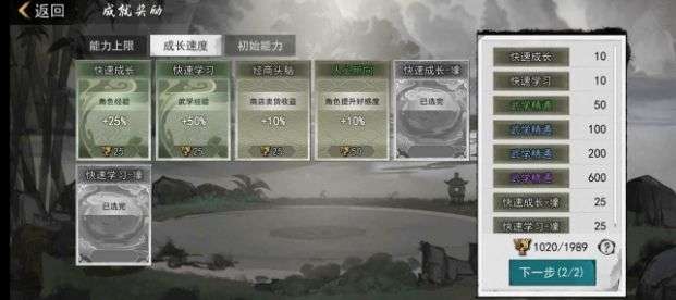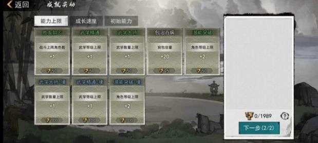 在成就比较低的情况下,老云有点推荐,优先武学等级上限,武学数量上限,角色等级上限。