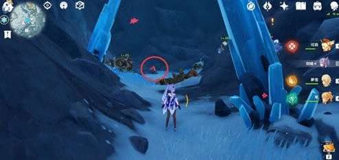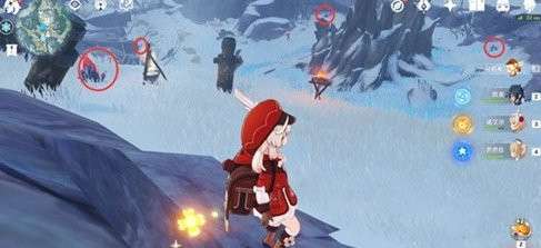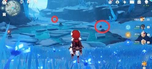 第一处覆雪之路的封印只要将附近的深赤之石打碎拾取后攻击封印即可。