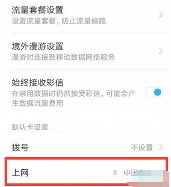 4、点击之后,下方会弹来两个选项,用户选择需要上网的手机卡即可。