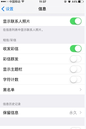 步骤一:打开手机【设置】,选择设置选项卡里的【信息】,再点击【保留信息】