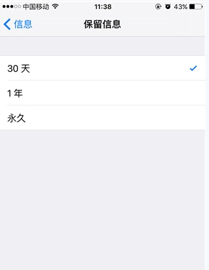 步骤二:此时可以进行信息自动删除的设置,用户可以根据实际需求,选择30天或者一年。