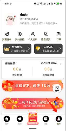 2、点击“进入钱包”选项,即可进行提现。用户下单、分红等所有收入都将自动转换成金额,多少元就是可提现金额。