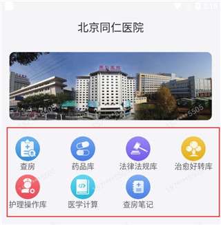 4、进入页面后,可以看到查房、药品库、法律法规库等一系列操作。
