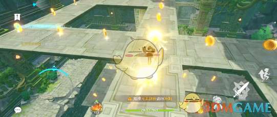 3、通关技巧:利用千织的技能在石板上移动,就能轻松收集冒险币。