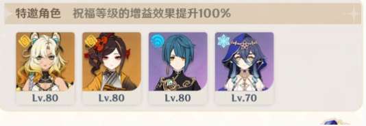 5.2版本起,特邀角色因「祝福等级」带来的增益效果将提升100%。
