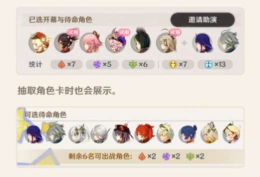 2、在已选角色处,还会统计各分类下的角色数量,抽取角色卡时也会展示。