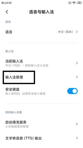 3、然后我们就可以看到我们的输入法设置了,点击下面的输入法管理。