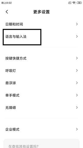 2、更多设置中有一个语言与输入法的选项,点击这个选项。