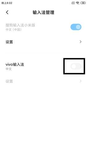 4、然后我们拖动那个开关把VIVO输入法设置起来即可。