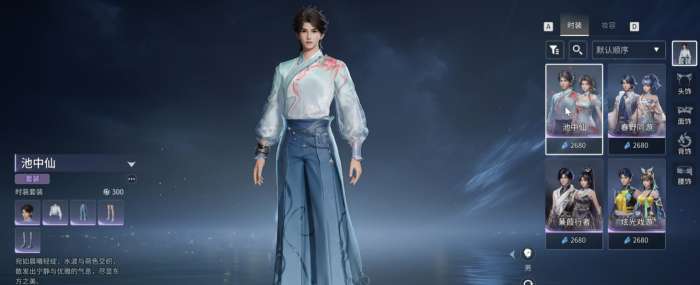 如果大家想找到池中仙套装的话,那就只需在游戏主页中点击商城选项之后,再点击中间的套装选项。就可以在里面找到各式各样的时装了,只不过这些时装都要花钱去买。