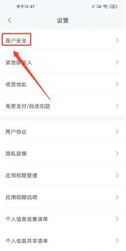 打开上汽大众app后,进入设置,点击(账户安全)按钮。