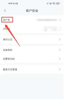 进入账户安全,点击(用户名)按钮。