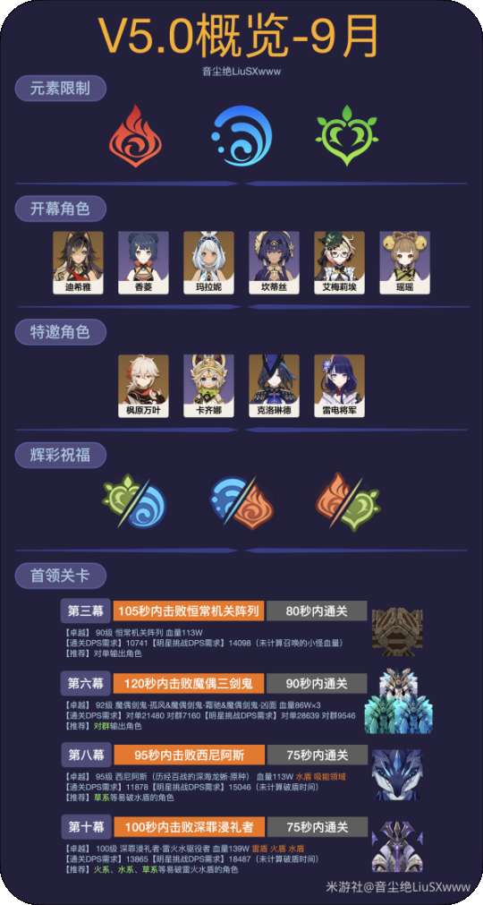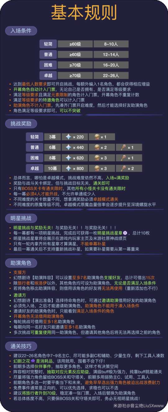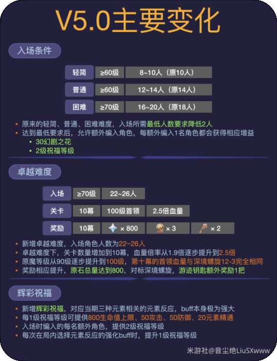5.0版本后,幻想真境剧诗发生了重大变化,门槛、关卡、奖励、主要打法都有所不同。