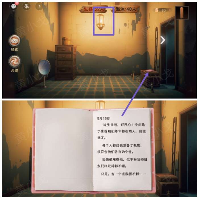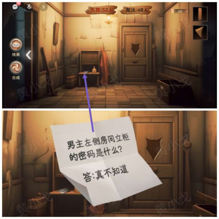 5.打开暗格,查看纸条内容,获得线索,告诉男主