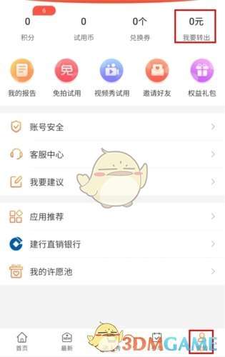 1、在我的页面中点击我要转出按钮;