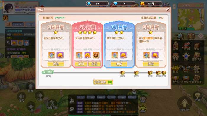 悬赏任务:刷 S/SS 级,经验比 C 级高 200%,组队效率翻倍。