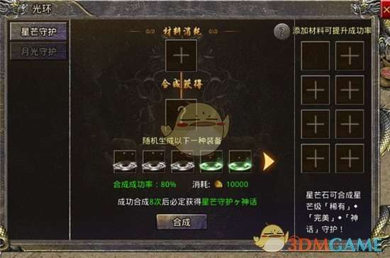 守护通过用星芒石或者月光石材料去灵光仙子(主城那边)来合成获得的,而合成阵法是有一定几率成功或者失败的,而通过星芒碎片或者月光碎片来加高成功的概率
