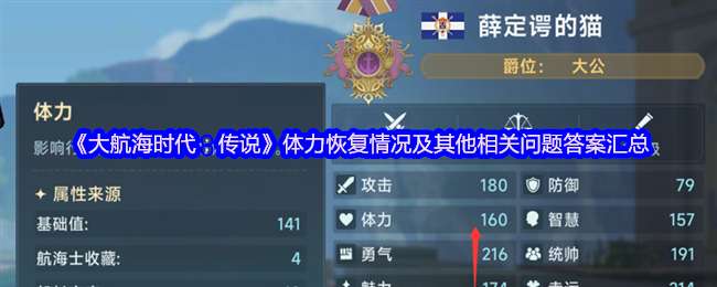 《大航海时代:传说》体力恢复情况及其他相关问题答案汇总