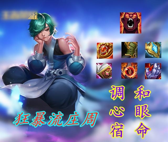 狂暴流庄周出装铭文如上,追求极限的吸血可以把调和换成贪婪,这套出装冷却是满的,但是极影千万别前期升满,2级的足够。