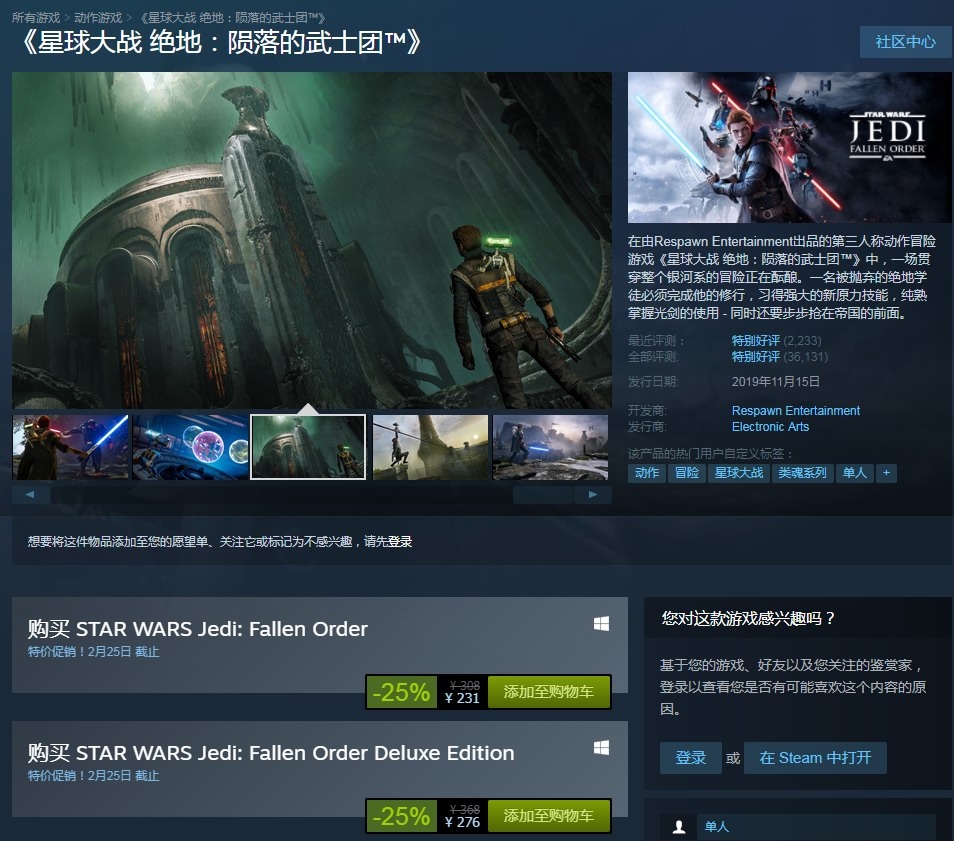 《星球大战》想必许多玩家即使没看过也通过它的大名,而人气影视有没被改编成游戏的吗?2019年被誉为系列最佳的游戏诞生了,它就是《星球大战绝地:陨落的武士团》。如果你是粉丝或者现在没什么游戏玩不如来看看。现在还是优惠打折期哦,和软教你的东东一起来看看吧!