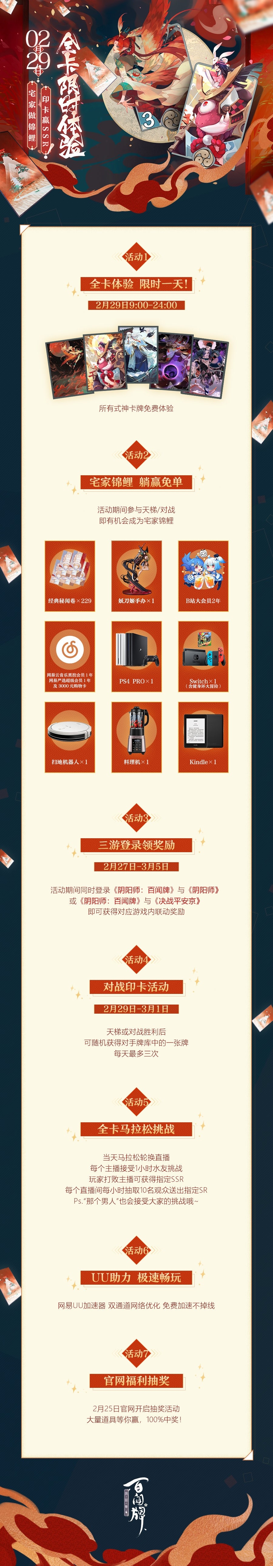 《阴阳师:百闻棋》活动福利又来了,废话不多说。PK手游网东东已经为大家整理好了,快一起来看看吧!三目联合各大神秘势力策划的活动就要到来了,先提透露一下消息:蜃气楼全卡限免日、宅家锦鲤、三游登录礼、还有大家都想要“再整一次”的对决印卡活动都将开启!