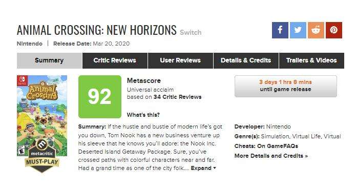 各位任天堂Switch小伙伴你们好,近日休闲大作《集合啦!动物森友会》已经在各大游戏媒体解锁评分了,目前在Metacritic均分目前达92分,其它游戏媒体同样也是赞不绝口。快和PK手游网东东一起来看看吧!