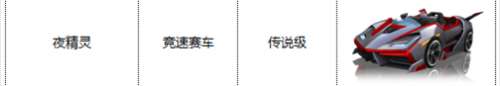 赛车简介:超低的合金车身,搭配黯灰色的纳米涂装,速度与颜值兼具的夜精灵犹如隐匿在夜色下蓄势待发的灵猫,时刻准备对终点发出致胜的冲击。