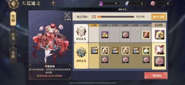 大荒通文这个东西类似于其他游戏中常见的通行证,在一定周期内达成任务提升等级解锁各个阶段的奖励。