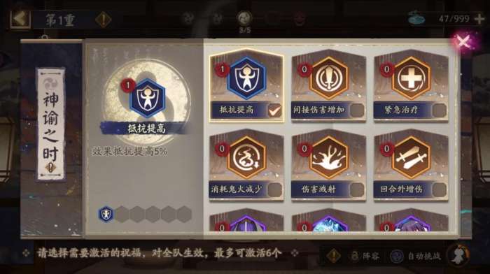 通过探索妖灵退治、奇遇、开卷取士、神秘商店等不同的事件,可获得「情报值」「鬼王的馈赠」等奖励,还可选择获得神谕之时的祝福,帮助大人提升战力灵活应对挑战。