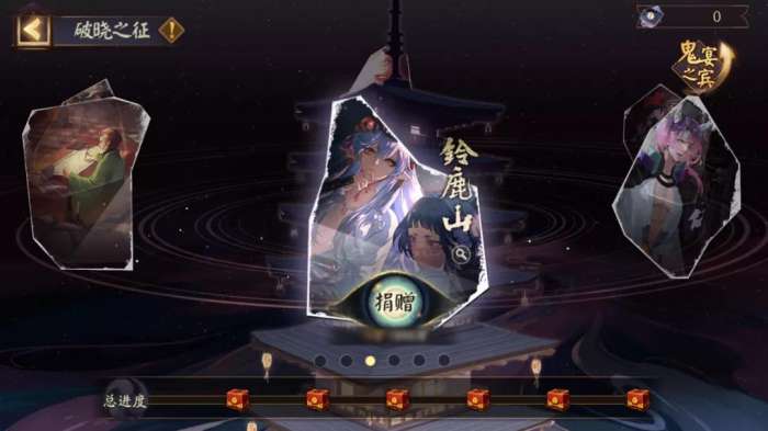 百鬼齐聚的京都妖气紊乱,阴影之处暗藏着危机与玄机,每一重百妖退治中包含多个关卡,将可能遇到各种不同的事件,每个关卡都可通过消耗「侦查力」选择一个事件进行探索。