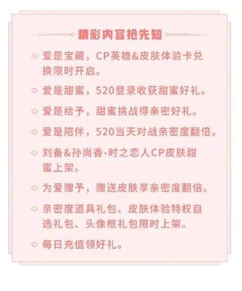 以上就是小编收集的520活动相关信息,希望以上信息对各位玩家们有所帮助。