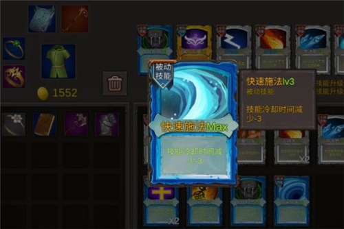 技能格从左到右分别是1号3级护体,2号2级护体,3号1级护体,四号3级亡者归来。后面的随意。后面推荐一个自动扣血的技能。