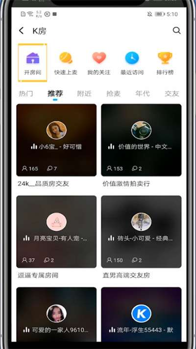 3、点击在线k房