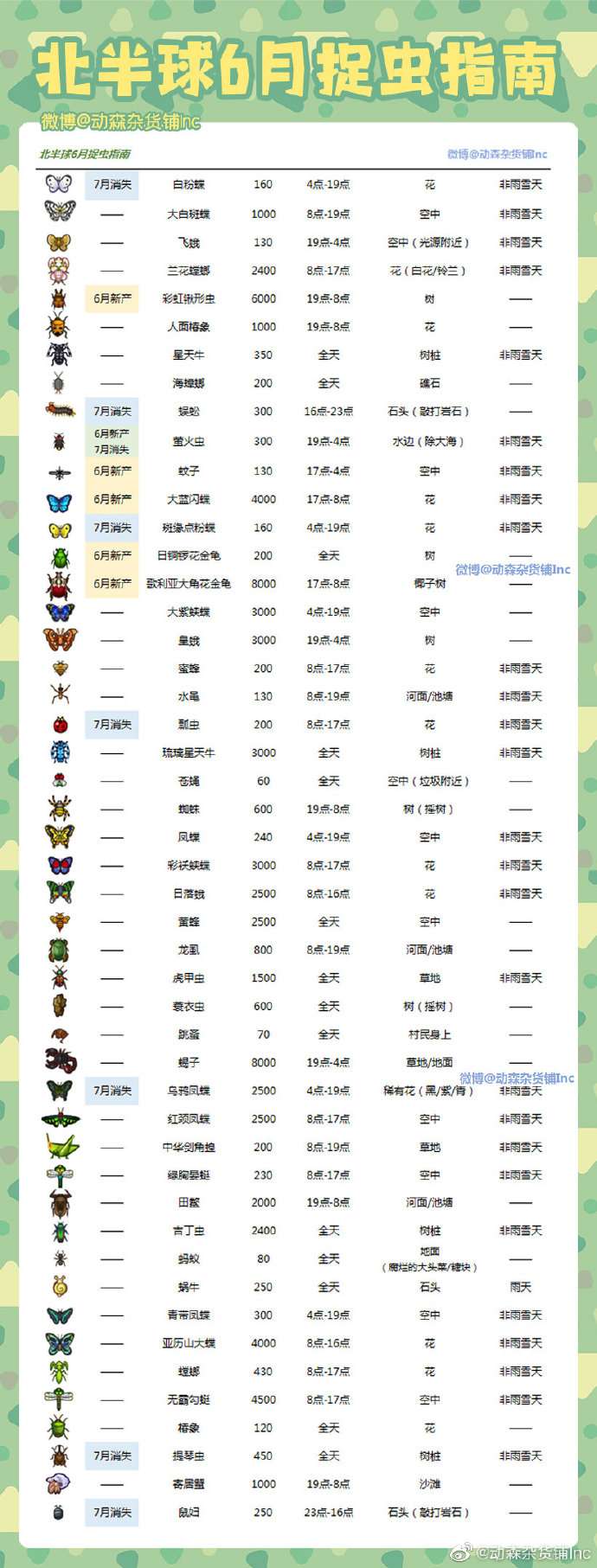 集合啦动物森友会北半球6月限定昆虫有哪些?6月夏季将至,全新的夏季活动婚礼月和贝壳道具将会出现。还不是很了解6月份可捕获昆虫都有哪些的小伙伴们,一起来看看吧。