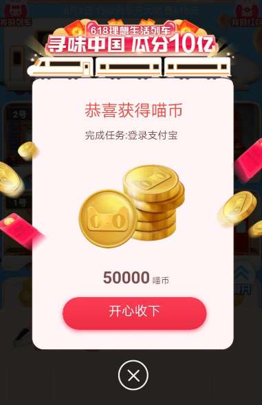 如果你的支付宝和淘宝是一个账号,我们也可以到支付宝上领取喵币。