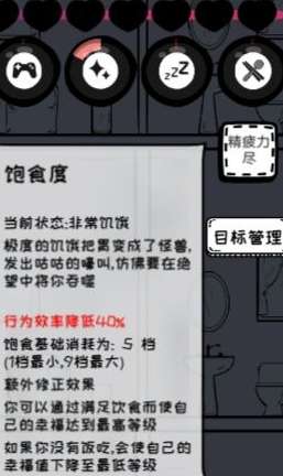 饥饿程度到10会死亡。
