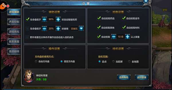 在挂机设置界面当中,你可以对挂机范围等进行设置。