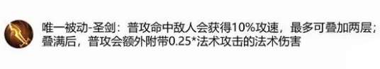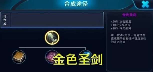 这件装备简单来说就是适合于持续输出的英雄,例如:扁鹊、周瑜、高渐离和貂蝉。换言之英雄只要技能CD短,可以持续输出即可购买这件装备。而且这件装备可以和【痛苦面具】形成联动效果,也就是你做出【痛苦面具】以后再出这件装备被动效果会叠加更快。 ②【金色圣剑】:唯一被动-圣剑:普攻命中敌人会获得10%攻速,最多叠加两层,叠满后,普工会额外附带法术伤害。 相信《王者荣耀》老玩家都知道这件装备,是曾经露娜的核心装备,后来这件装备因为属性太过强势,而且当时没有几个靠攻速输出的法师,这件装备成为了某个英雄的专属装备,所以被删除了。