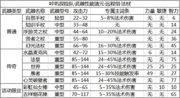 法杖系武器在远程组武器中,基本攻击力上限高于弓,下限为同组最高值。