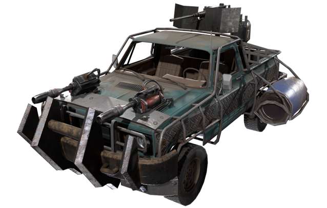 沙漠中的皮卡被小白裙开到海岛里面啦!而且还做了劲爆改装:车头安装车载喷火器、车身加装一对浮筒(部分没有)、车厢改造成M2车载机枪,乘坐人员降低为3人。