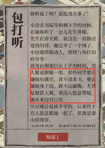 起因是新卡面梁祝被吐槽立绘不够好看,不过卡面这种东西见仁见智小宅也不太在意。但是,剧情这点却让很多女玩家纷纷开始吐槽,“祝英台勇敢聪慧敢于突破世俗,十四岁男扮女装离家千里求学,结果被这篇文案写成这样?功课差身子弱孤零零没自信?玛丽苏也不能这么写吧,丽娘汤显祖人设没被骂够吗,现在还霍霍祝英台来了? ”