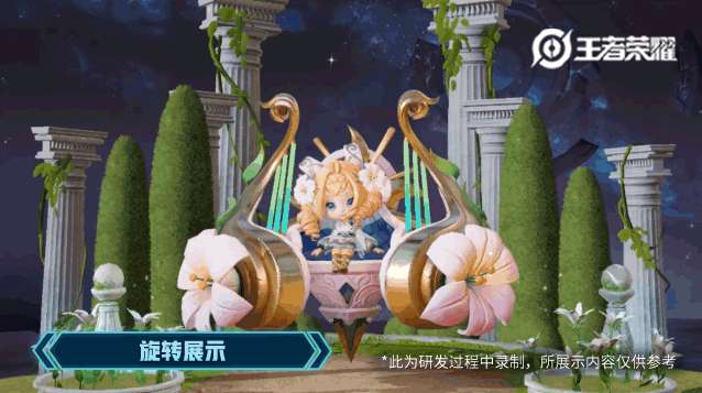 【展示动画】一年一度的花车游行盛典到了,小吟游诗人蔡文姬也想参加,可是她没有自己的花车,于是她对着天空的流星许愿。突然,一颗金灿灿的星星从夜空划下,落进了土里,蔡文姬惊喜地飞奔过去,土坑里竟然神奇地冒出了一棵嫩芽!她欢呼雀跃,围绕着花骨朵跳起了她自创的祈福舞蹈,随着她的舞步旋转,嫩芽逐渐长大,变成了华丽的百合花车托起蔡文姬