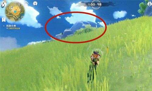 开局往右上角走,小姜就藏匿在左边的巨石背后。