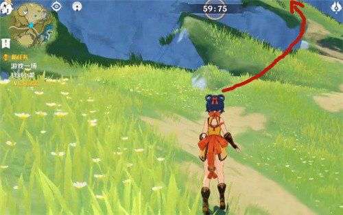 开局一直往前走,走到黄色灌木丛那里停下来,往右边看就是小姜,这次是藏在悬崖边上。