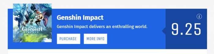 《原神》国外首个媒体评分出炉,本作获得知名媒体GameInformer 9.25分评价。