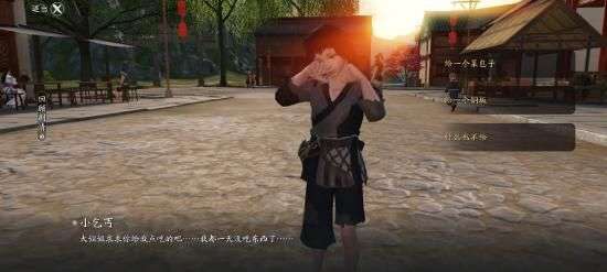 跟小乞丐对话,他会说自己已经一天没吃东西了,求求你给他点吃的,少侠们可以选择给一个菜包子,给一个铜板或是什么也不给。这里,选择给一个铜板,小乞丐说了声谢谢。