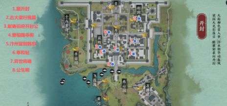 开封墨宝一共有八个,第一个墨宝叫题开封,这个墨宝很容易找,在开封府正门入口的大堂里就可以找到;第二个墨宝叫古大梁行残片,这个墨宝在,开封府正门右边的大院子里,在院子里的传送点附近的一个石碑就可以刻录。