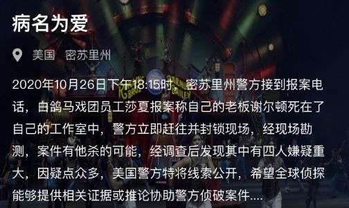犯罪大师病名为爱正确答案是啥,很多人都在和朋友来一起探索这个其中的一些问题的解析流程,如何获得最新的答案呢,大家都应该知道其中解析方式,下面就来介绍下犯罪大师病名为爱凶手是谁。